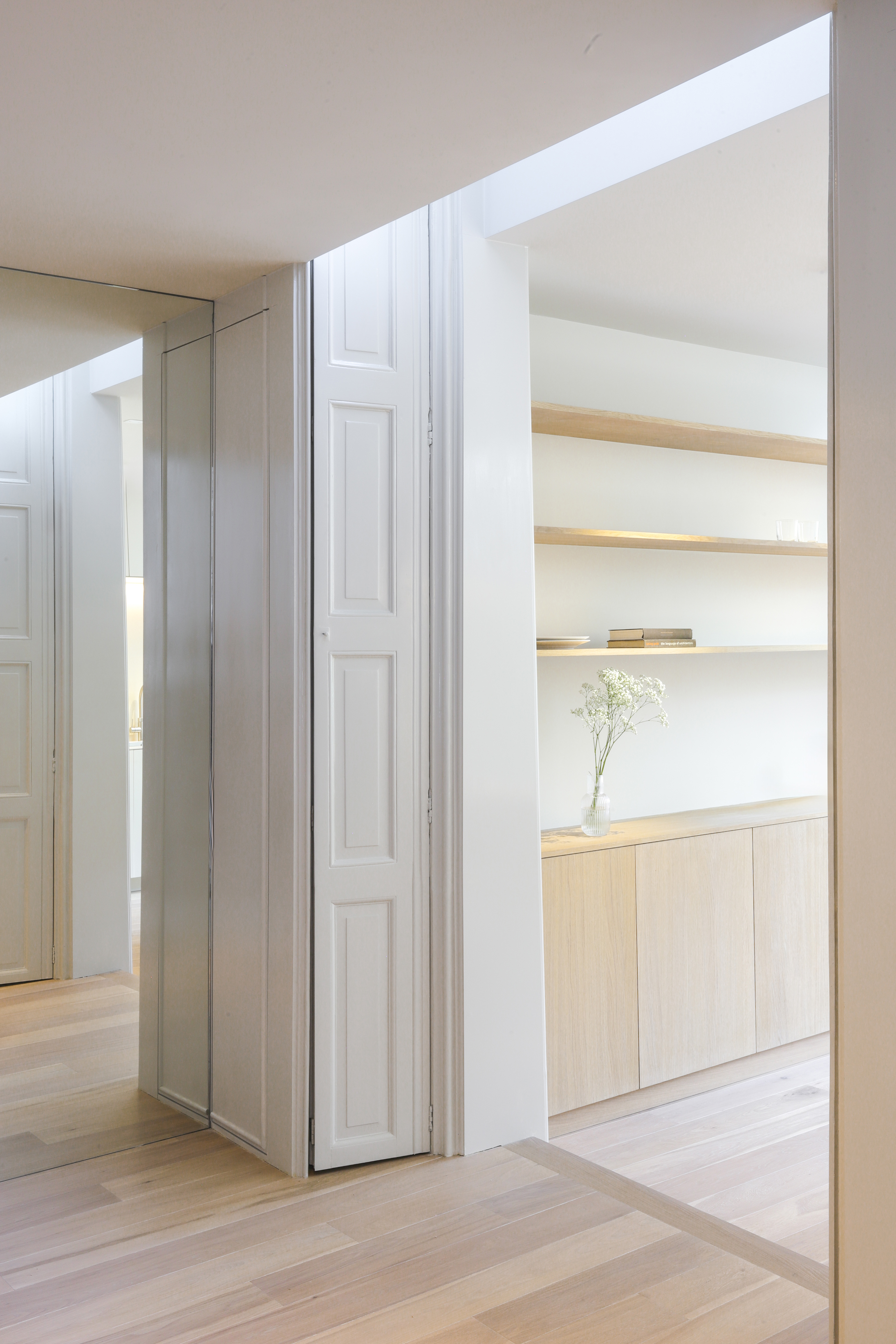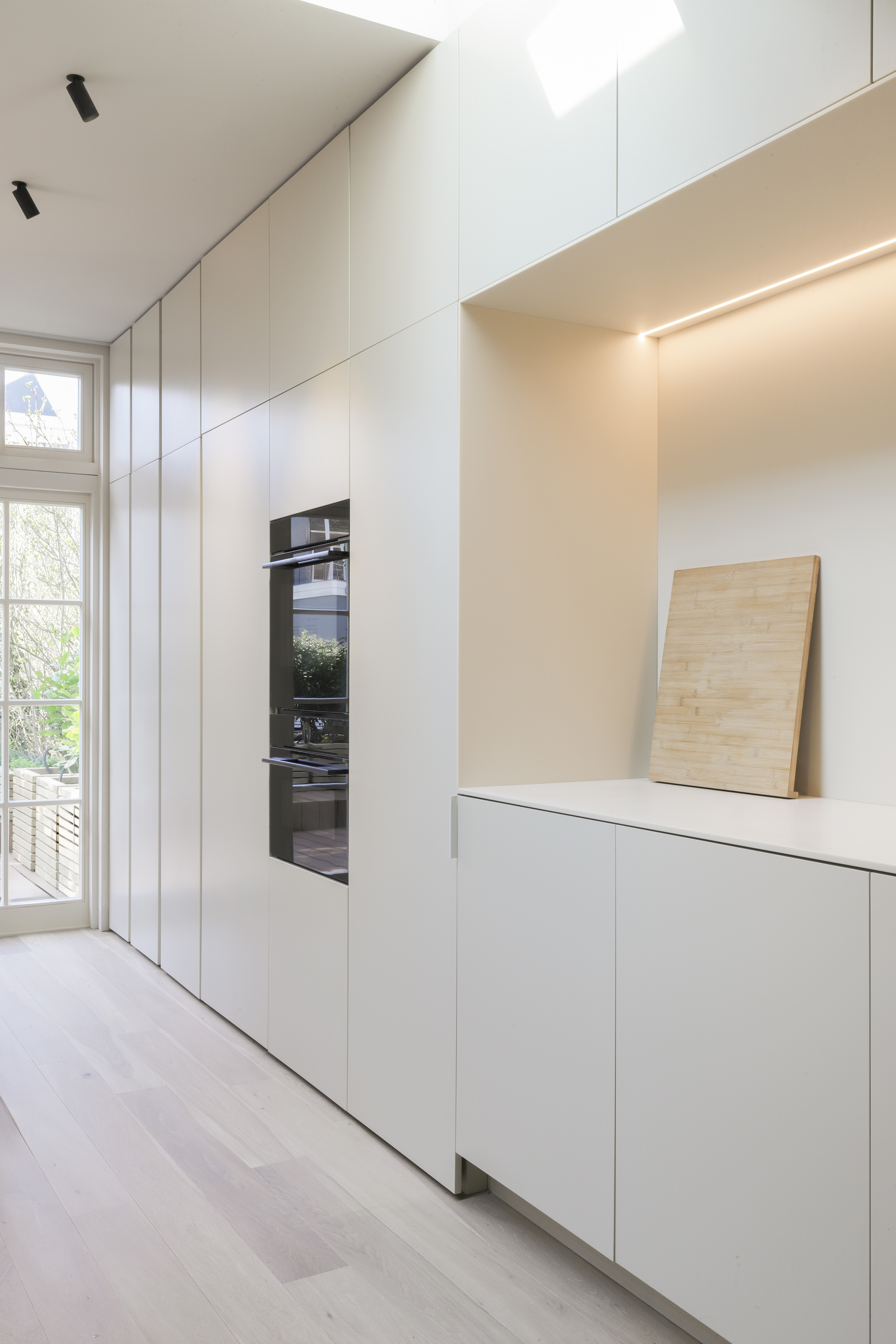 The house has been given a calm yet warm palette. The starting point was the continuous oak floor. This creates a beautiful and soft connection between the existing and the new.